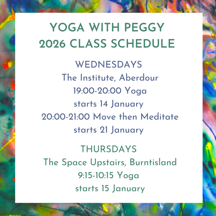 Yoga with Peggy classes are all about feeling great. At classes in Burntisland and Aberdour you can look forward to stretching, breathing, strengthening and relaxing. All are welcome, including newcomers and those who already love yoga!